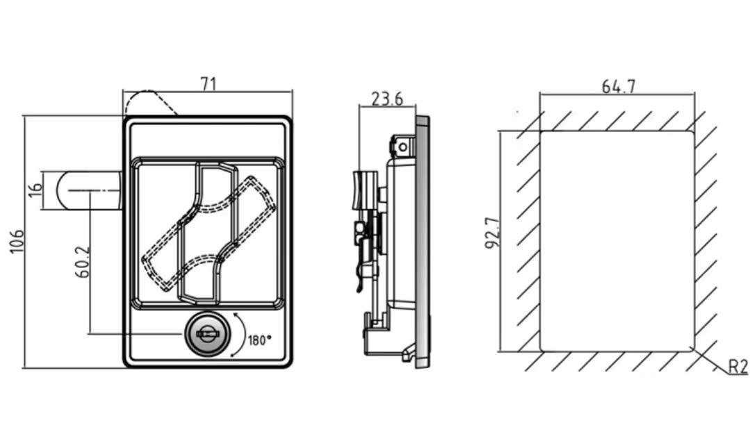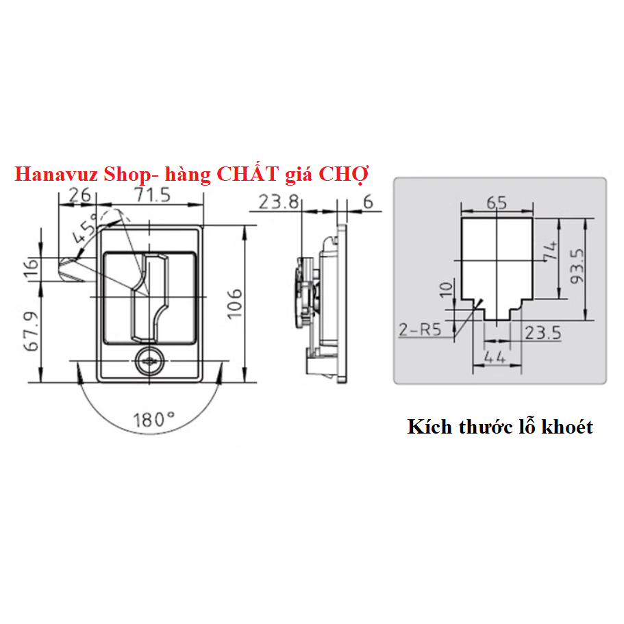 Khóa tủ Vuông to – tay vặn giữa